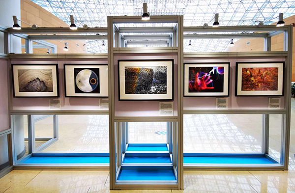 本次展出由頂美公司設計搭建將49張融合科學與藝術的攝影作品,分微觀和宏觀兩個展區(qū),巧妙地展示了科學世界的神奇魅力。經過前期緊張的準備,現(xiàn)場嚴格的搭建質量把控,展示區(qū)按期交付使用。在此次展覽中,布局合理,材料和色彩運用恰當,展位形象醒目突出,取得了良好的現(xiàn)場展覽效果。